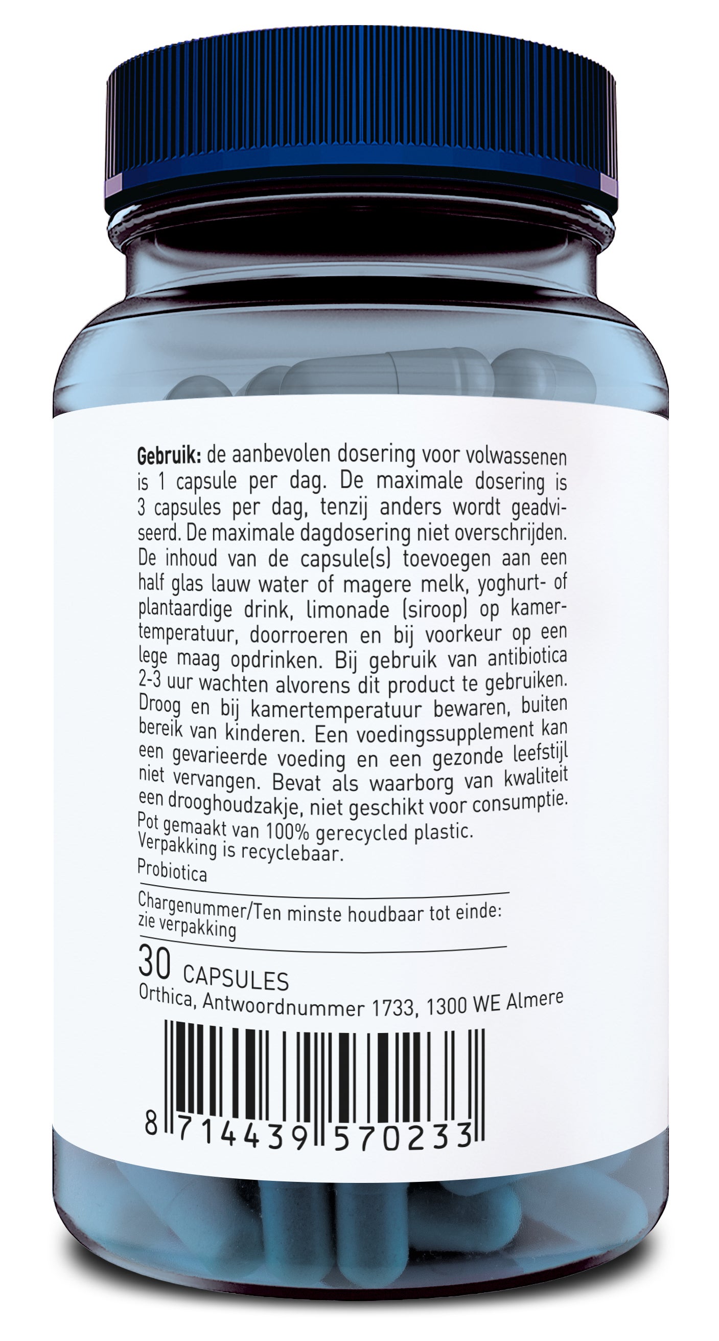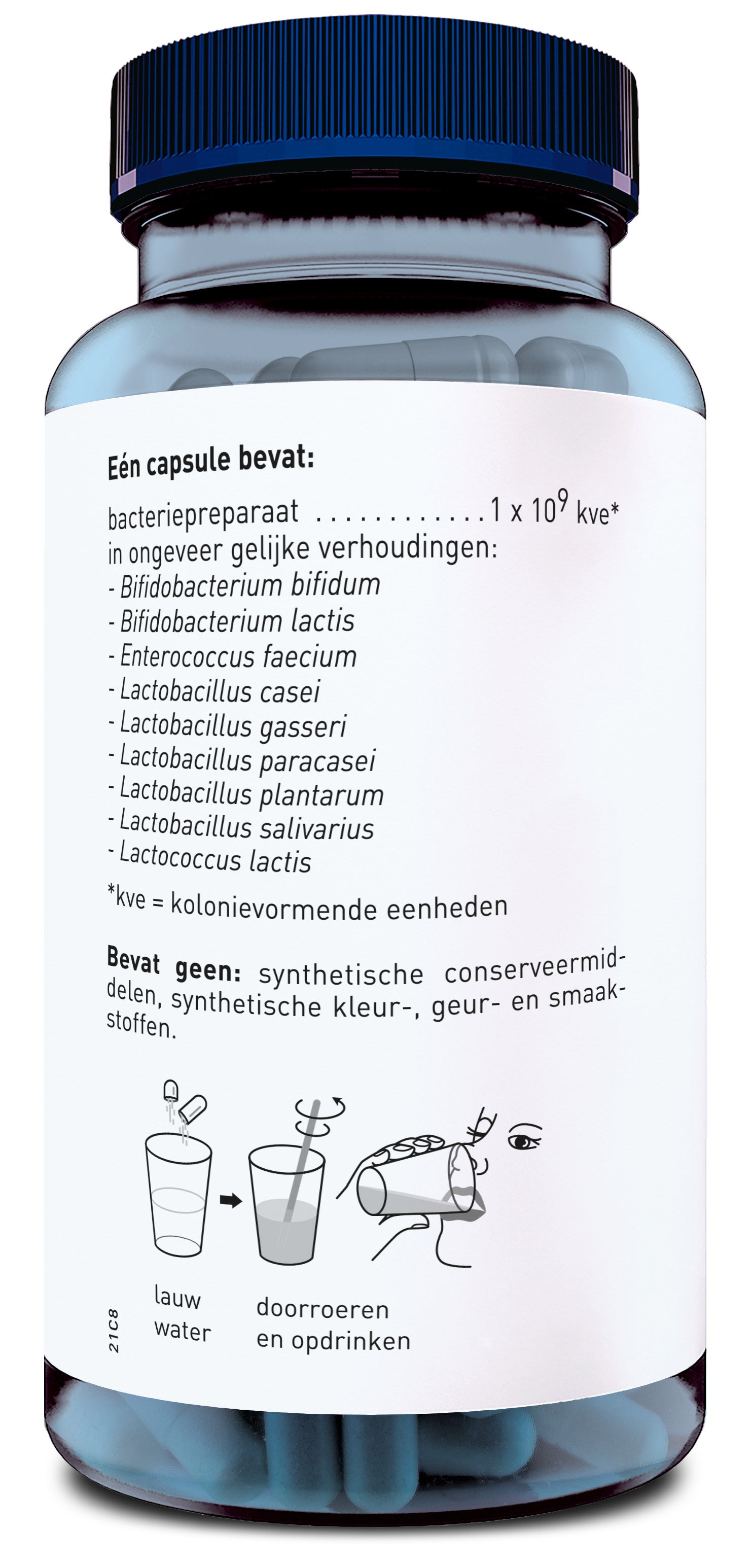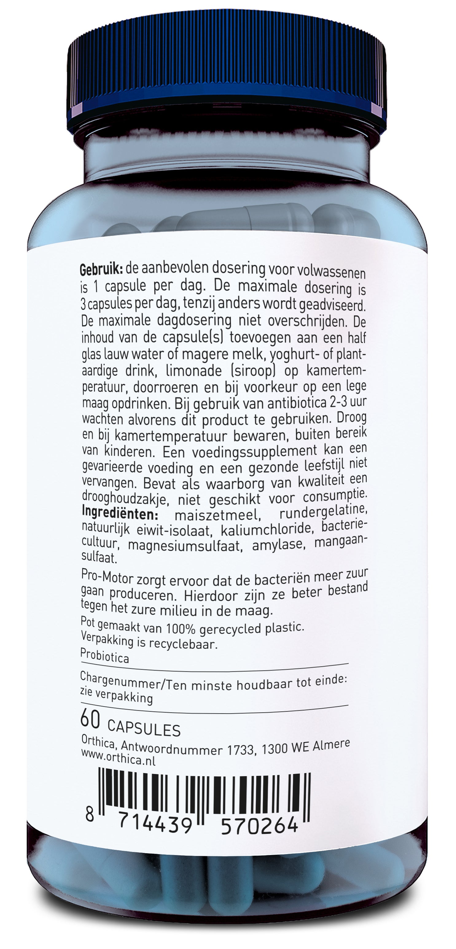 Biotica met 9 verschillende bacteriestammen voor dagelijks gebruik. Bevat Pro-Motor technologie voor een goede overleving van de bacteriën in de darm.